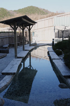 또 따듯한 온수가 흐르는 계단을 따라 올라가게 되면 먼저 보행족탕에서 가볍게 보행을 하면서 족욕을 한후 계곡족탕과 휴게족탕을 따라 이용하게 되어 있으며 가족, 연인 등 남여노소가 부담없이 족탕을 할수 있도록 돼 있는 국내 유일한 족탕(풋스파) 시설이다.