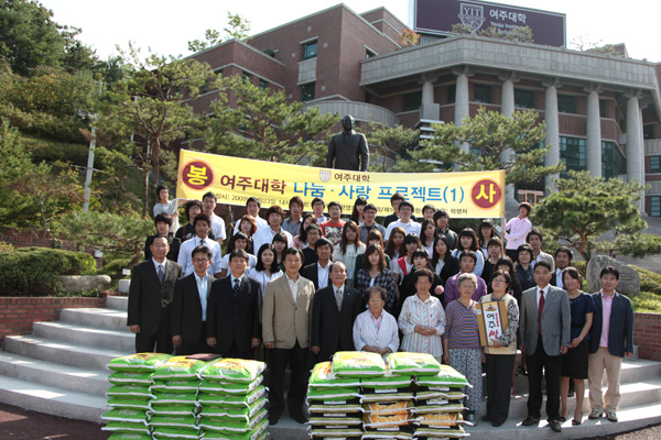 여암학술정보관 설립자 정동성 박사의 동상 앞에서 열린 나눔·사랑 프로젝트는 신종 인플루엔자 확산으로 개최 예정이었던 제17회 용마축제가 취소됨에 따라 총학생회와 대의원회 주최로 축제의 일부 예산과 작년도 축제 이익금의 일부를 마련하여 이웃사랑 실천, 지역 어르신들과의 사랑 나눔 실천에 한 발짝 다가가는 계기를 마련했다.