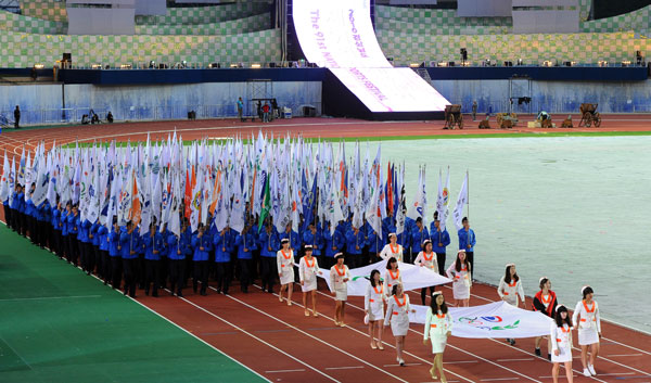 공식 행사에서는 차기 개최지인 경기도를 선두로 전국 16개 시·도 선수단과 임원, 해외동포 선수단 등이 차례로 입장한다. 인천시는 3번째로 경기장에 모습을 보인다.