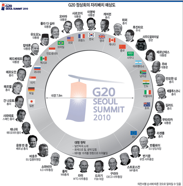 이 대통령은 G20 정상회의 기간 9개국 정상과 릴레이 회담을 갖고 국제 환율분쟁 해결과 신흥국 개발 행동계획 마련과 같은 주요 회의 의제의 합의 도출을 위한 사전 조율에 나설 계획이다.
