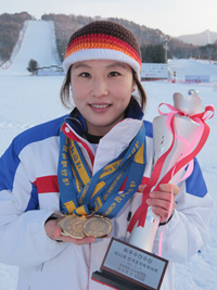 지난 18일 강원도 평창군 용평리조트 야외무대에서 폐막된 제92회 전국동계체육대회에서 최우수선수상을 수상한 김선주(27·경기도스키협회)는 기쁨을 감추지 못했다.