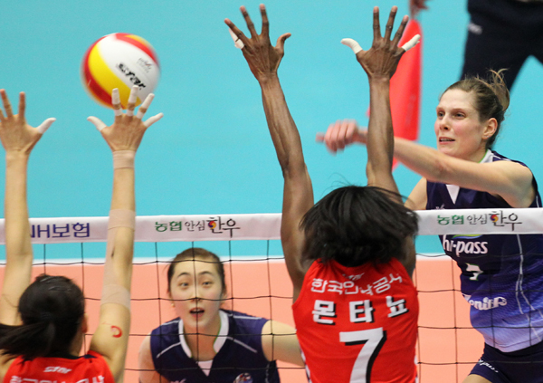 한편 성남에서 열린 성남 도로공사와 대전 인삼공사의 경기에서는 4년 만에 포스트시즌을 앞둔 도로공사가 쎄라 파반(14점)과 황민경(15점)의 활약으로 지난해 챔피언 인삼공사를 3-0(25-23 25-18 25-19)으로 완파하고 2위를 지켰다.