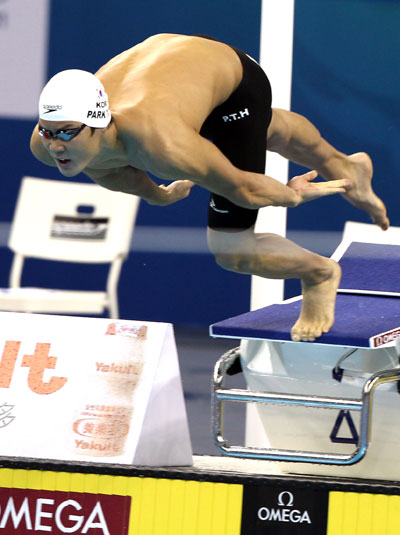 박태환은 25일 중국 상하이 오리엔탈 스포츠센터에서 열린 남자 자유형 200m 준결승 1조에서 1분46초23으로 야닉 아넬(프랑스·1분45초62)에 이어 조 2위로 결승점을 통과했다.