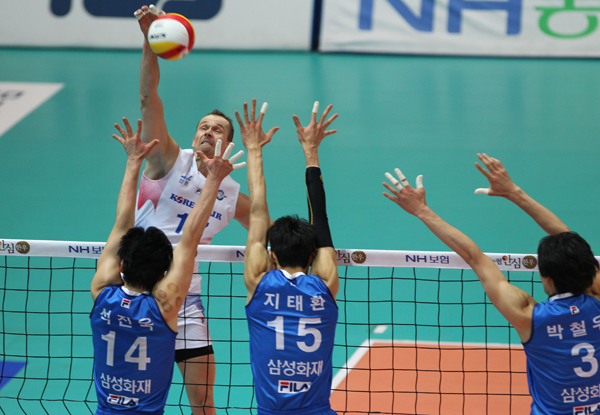 대한항공은 마틴과 김학민(12득점)의 좌우 날개와 이영택(8득점), 진상헌(3득점)의 센터 공격을 골고루 활용하면서 경기를 쉽게 풀어나갔다.