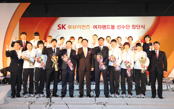 12일 경기도체육회와 SK 루브리컨츠에 따르면 SK 루브리컨츠는 지난 10일 서울 방이동 SK핸드볼 보조경기장에서 최태원 대한핸드볼협회장과 최관호 SK 루브리컨츠 구단주, 노태강 문화체육관광부 체육국장, 최종준 대한체육회 사무총장, 이태영 경기도체육회 사무처장, 김희자 경기도핸드볼협회장 등 체육계 관계자와 선수단 가족 등 200여명이 참석해 용인시청 팀 해체 위기를 딛고 이뤄낸 ‘제2의 탄생’을 축하했다.
