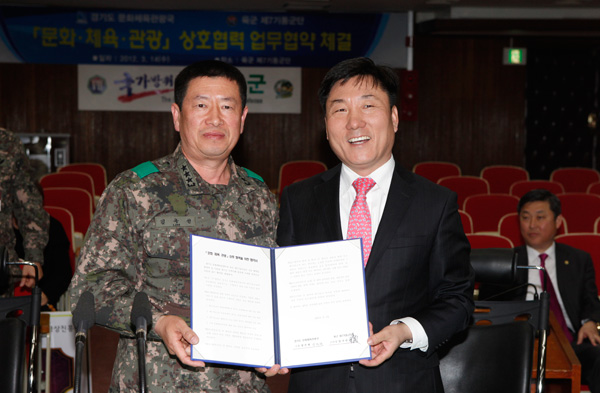 도 문화체육관광국은 14일 육군 제7기동군단 회의실에서 양진철 도 문화체육관광국장과 임국선 육군 제7기동군단장, 이태영 도체육회 사무처장 등이 참석한 가운데 ‘문화·체육·관광 상호협력을 위한 협약’을 체결했다고 밝혔다.