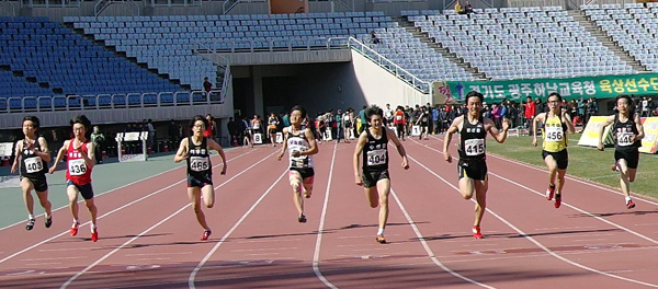 이밖에 남초부 6학년 100m에서는 이진섭(고양 한수초·12초74)이 우승했고 여초부 5학년 높이뛰기 박신영(양주 고암초·1m30), 남고부 1학년 100m 김병찬(김포제일고·11초36), 2학년 멀리뛰기 이상진(부천 심원고·6m55), 3학년 1천500m 유재정(의정부 호원고·4분12초46), 여고부 1학년 100m 임지희(시흥 소래고·13초11), 2학년 5천m 경보 이소리(양평 용문고·25분40초82), 3학년 100m 박지연(경기체고·13초00)도 각각 금메달을 획득했다.