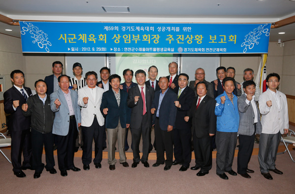 경기도체육회는 25일 연천군 수레올아트홀에서 이태영 도체육회 사무처장과 권연섭 연천군 문화체육교육과장, 조주연 연천군 도민체전 TF팀장, 이용해 시·군체육회 부회장단협의회 회장을 비롯한 시·군체육회 상임·수석 부회장 및 사무국장 등 30여명이 참석한 가운데 제93회 전국체육대회 종합우승 및 제59회 경기도체육대회 추진상황보고회를 개최했다.