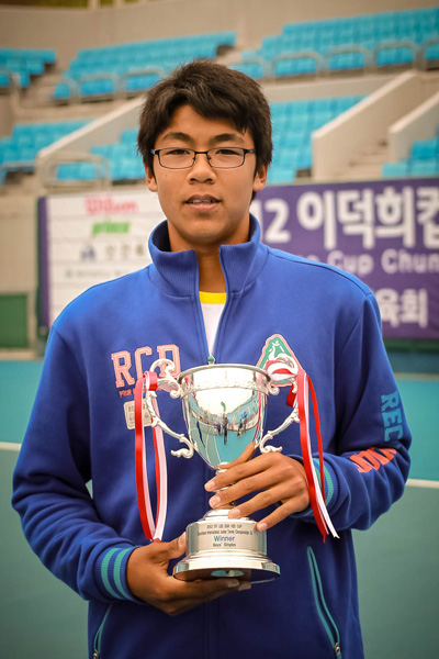이번 대회 1번 시드를 받은 세계 주니어랭킹 17위 정현은 4일 강원도 춘천 송암스포츠타운 테니스코트에서 열린 대회 남자 단식 결승에서 2번 시드인 젱 웨이치앙(중국·세계 주니어랭킹 59위)을 세트스코어 2-0(7-5 6-1)으로 완파하고 우승배를 들어올렸다.