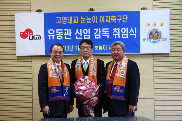 ‘2012 여자 실업축구 여왕’ 고양 대교가 2일 서울 서초구 방배동 대교눈높이서초센터에서 새 사령탑인 유동관(49) 감독의 취임식을 가졌다. 유동관 감독은 현역 시절 K리그 포항에서 뛰면서 10년간 207경기 동안 5골 4도움을 기록한 수비형 미드필더 출신으로 1996년 포항 코치를 시작으로 지도자의 길로 접어든 뒤 서울 영등포공고, 용인 신갈고 감독 등을 역임했으며 2011년 신갈고를 고교리그 정상에 올려놓고 그해 대한축구협회 최우수지도자상을 받았다.
