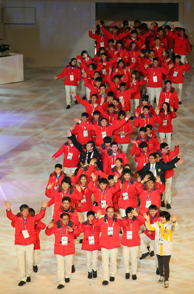 110개 나라에서 온 3천300여 명의 선수단은 ‘투게더 위 캔(Together We Can)’이라는 슬로건 아래 열린 대회 개막식은 지적장애인과 출연자가 함께 즐기는 선수단 입장으로 시작됐다.