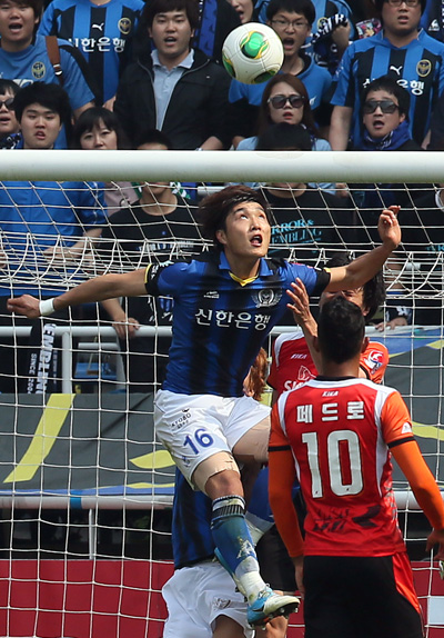 전반 8분 이천수의 과감한 중거리 슈팅이 제주 골키퍼 박준혁에게 막한 인천은 전반 12분에도 한교원이 골 지역 왼쪽에서 때린 슈팅이 상대 골키퍼에 막히며 득점과 연결되지 못했다.
