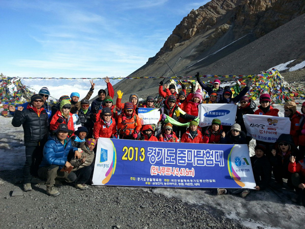 경기도생활체육회는 이날 히말라야 안나푸르나 원정에 나선 ‘2013 경기도 줌마탐험대’가 최종 목적지인 토롱라패스(5천416m) 등정에 성공했다고 밝혔다.