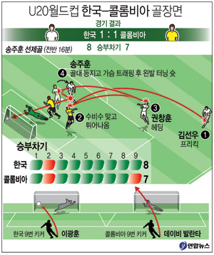 20세 이하 축구대표팀이 승부차기까지 가는 혈전 끝에 남미의 강호 콜롬비아를 꺾고 4년 만에 20세 이하(U-20) 월드컵 8강에 진출했다.