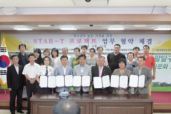 이날 협약식에는 윤건모 수원시 팔달구청장, 한원찬 ㈔바르게살기운동 수원시협의회장, 유태백 수원시방범기동순찰 팔달구연합대장, 김희순 수원탁틴내일 회장, 남궁미선 지동초등학교 어머니폴리스회장 등이 참석했다.