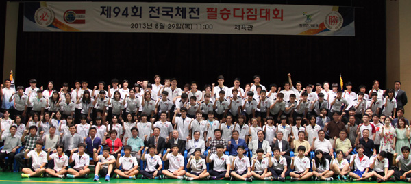 이날 다짐대회에는 박용섭 도교육청 체육건강과 장학관과 장평수 도체육회 총무·운영부장, 신융선 초대교장을 비롯한 역대 교장들, 도체육회 가맹경기단체 전무이사, 곽병길 학교운영위원장, 김미선 학부모회장 등 내빈과 학생, 지도자 등 200여명이 참석했다.