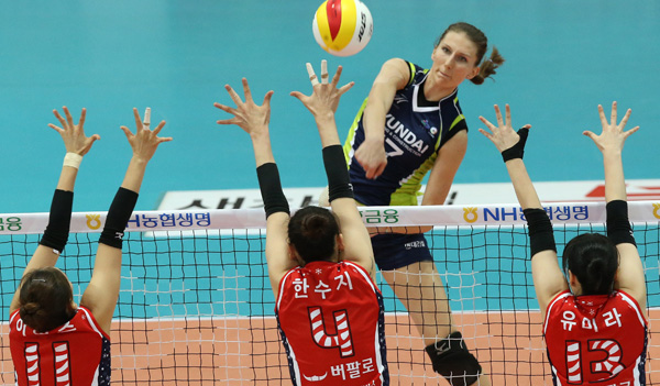 6연승 이후 최근 2연패로 주춤했던 현대건설은 이로써 10승 4패가 돼 여자부 팀 중 처음으로 두자릿수 승수를 올리며 승점 27점을 올려 성남 한국도로공사(9승 6패·승점 26점)와 화성 IBK기업은행(9승 5패·승점 25점)을 제치고 엿새 만에 1위 자리를 탈환했다.