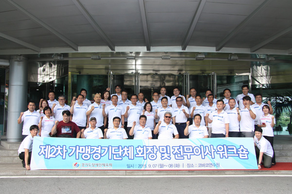 경기도장애인체육회는 7일부터 8일까지 이틀간 양평 코바코연수원에서 ‘2015년 제2차 가맹경기단체 회장 및 전무이사 워크숍’을 개최했다.