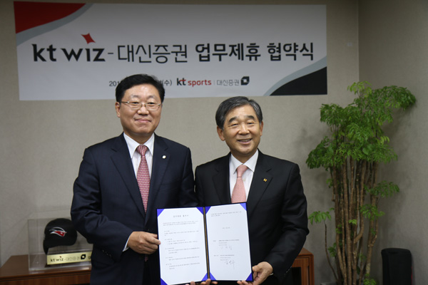 프로야구 케이티 위즈는 16일 대신증권과 2016년부터 2020년까지 5년간 업무 제휴 협약을 체결했다.