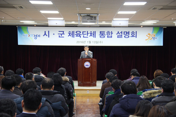 경기도는 13일 수원시체육회관 2층 대회의실에서 ‘시·군 체육단체 통합 설명회’를 개최했다.