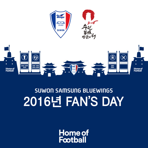 2016 팬스데이에 대한 보다 자세한 안내 사항은 구단 홈페이지(www.bluewings.kr)와 페이스북(www.facebook.com/SuwonSamsungFC)에서 확인 가능하며 수원을 사랑하시는 팬이라면 누구라도 참석이 가능하다.