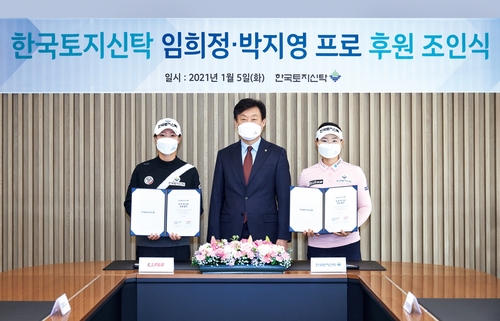 한국토지신탁은 "5일 서울 강남구 코레이트타워에서 후원 조인식을 개최했다"며 "이번 후원 계약으로 임희정과 박지영은 한국토지신탁 로고가 들어간 모자, 의류를 착용하고 경기에 나서며 기업 및 브랜드 홍보대사로 활동할 예정"이라고 6일 밝혔다.