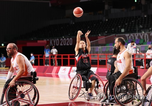 한국 남자 휠체어농구 대표팀은 25일 일본 도쿄 무사시노노모리 종합 스포츠 플라자에서 열린 2020 도쿄 패럴림픽 조별리그 A조 1차전에서 스페인에 53-65로 졌다.
