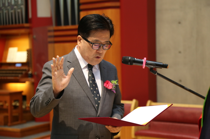 이어 이건희 한국기독교장로회 증경총회장의 축사와 서울동노회 목사회의 축가, 교가제창, 전병금 한국기독교장로회 증경총회장의 축도로 이·취임식 예식이 종료됐다.
