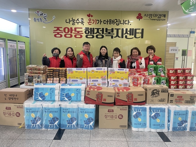 중앙동 ‘해뜰 생필품 나눔’사업은 후원금으로 구입한 다양한 생필품 및 식료품을 꾸러미로 만들어 저소득 소외계층에 나누는 사업이다.
