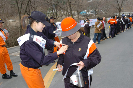 동두천시 공무원, 동두천소방서 및 의용소방대는 지난 2일 100여명이 참여한 가운데 봄철 산행이 잦은 소요산에서 등산객들에게 산불예방 전단지, 볼펜 및 책갈피 등의 홍보물을 나누어 주며 합동으로 산불예방 캠페인을 전개했다.
