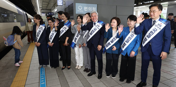 정청래 당대표와 김병기 원내대표를 비롯한 민주당 지도부는 ‘더불어 풍요로운 한가위’라는 문구가 적힌 어깨띠를 두르고 서울 용산역을 찾아 귀향길에 나선 시민들에게 인사했다.