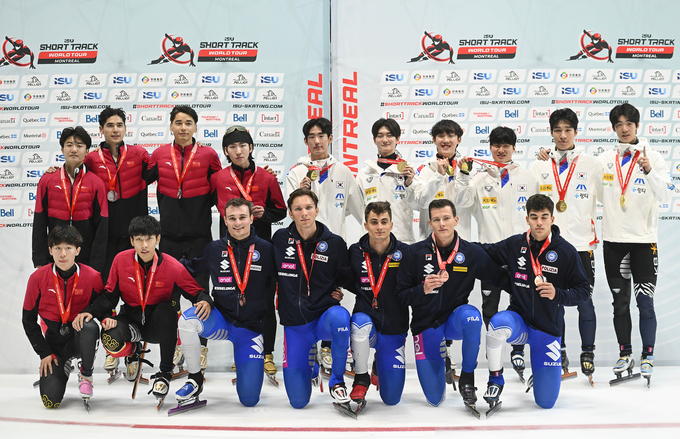 한국 쇼트트랙 남자 대표팀이 2025-2026 국제빙상경기연맹(ISU) 쇼트트랙 월드투어 1차 대회 5000m 계주에서 시상대 정상에 올랐다.