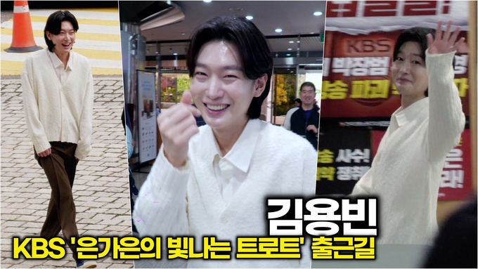 가수 김용빈이 10월 14일(화) 오후, 서울시 영등포구 여의도 KBS 본관에서 진행되는 KBS 라디오 '은가은의 빛나는 트로트' 생방송 출연을 위해 방송국에 도착하고 있다.