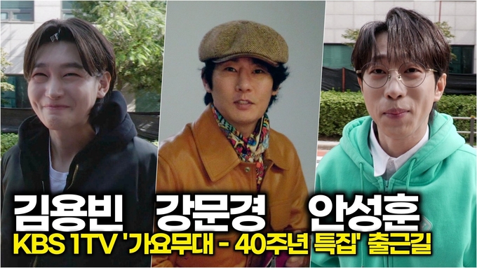 가수 강문경, 김용빈, 안성훈이  10월 20일(월) 오전, 서울시 영등포구 여의도 KBS홀에서 진행되는 KBS1 ‘가요무대 - 40주년 특집’ 녹화를 위해 방송국에 도착하고 있다.
