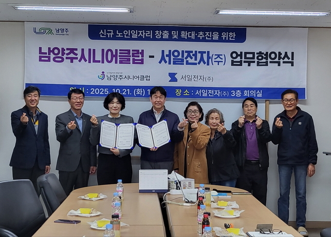 남양주시는 21일 노인 일자리 전담기관 남양주시니어클럽이 진건읍 진관산업단지 내 서일전자(주)와 노인 일자리 공동체사업단 운영을 위한 업무협약을 체결했다고 밝혔다.