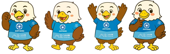 ‘또미’는 시조(市鳥)인 독수리를 '밝고 정의로운 어린이 독수리 친구'로 의인화한 캐릭터로, 유니세프의 아동친화 철학을 담은 파란색 티셔츠를 입고 있다.
