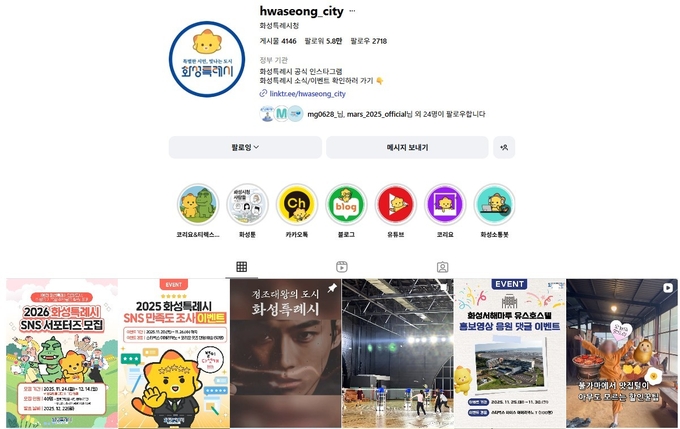 대표 채널인 유튜브 ‘화성특례시·화성온TV’는 구독자 7만 명을 넘어 전국 226개 기초지자체 중 2위에 올랐다.