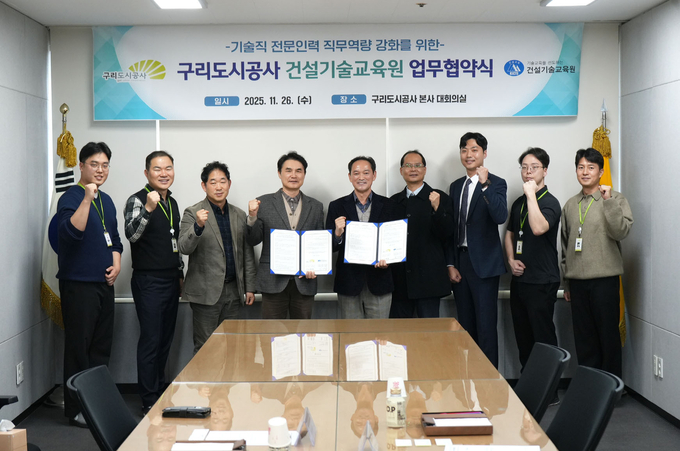 구리도시공사(이하 공사) 기술직 직원들의 직무역량 강화를 위해 건설기술교육원과 업무협약을 지난 26일 체결하고, 양 기관의 지속적인 협력을 약속했다고 전했다.