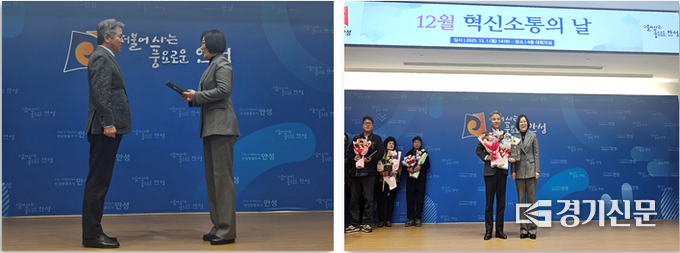 한국농어촌공사 안성지사는 1일 ‘안성시 혁신소통의 날’을 맞아 청년농업인 육성을 통한 ESG경영 실천 노력으로 안성시로부터 표창패를 받았다. 김보라 안성시장이 직접 표창패를 수여하며, 안성지사의 지역 농업 발전 기여에 감사의 뜻을 전했다.