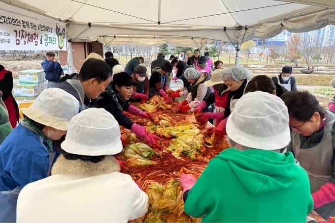 시흥시 배곧2동 주민자치회는 지난달 29일 시민행복텃밭에서 김장 행사를 열고, 직접 만든 김장 김치를 지역 장애우 단체에 전달하며, 이웃과 온정을 나눴다.