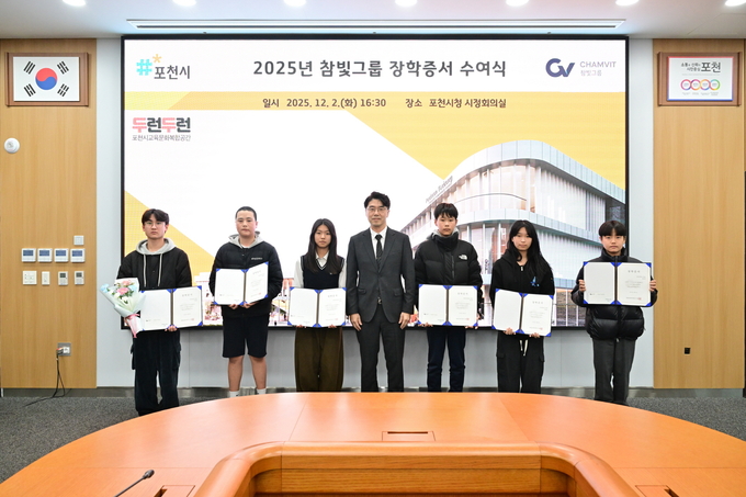 포천시 관내 대중골프장을 운영하고 있는 참빛그룹에서 포천시청 시정회의실에서 지역내 인재 육성을 위한 장학증서 수여식을 개최한 가운데 시 관내 중·고·대학생 15명에게 1080만 원의 장학금을 전달했다