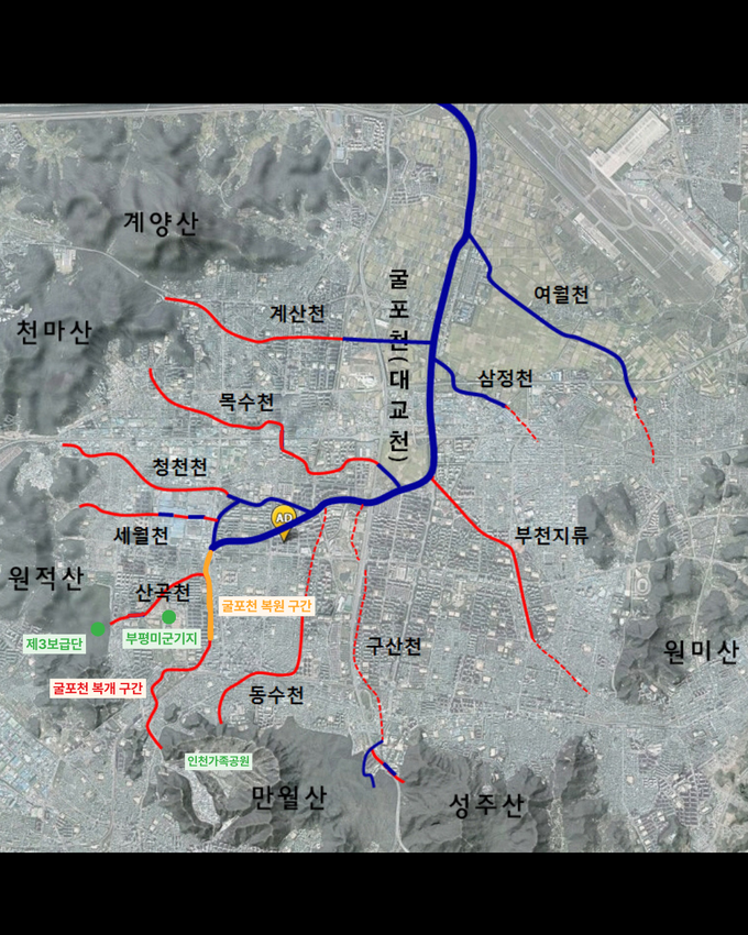 산곡천과 세월천 등 10개의 지류와 굴포천이 하나로 만나는 만큼 부평미군기지 공원화 사업과 제3보급단 이전사업과 연계한 산곡천 복원을 추진해야 한다는 것이다.