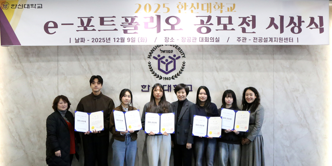 한신대학교 전공설계지원센터는 학생들의 자율적인 전공 설계와 진로 로드맵 작성을 지원하기 위해 ‘2025 한신대학교 e-포트폴리오 공모전’을 개최하고, 9일 경기캠퍼스 장공관 1318 대회의실에서 시상식을 진행했다.