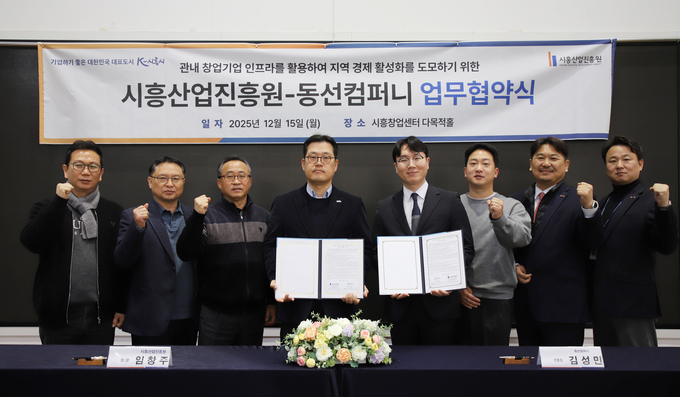 시흥산업진흥원은 지난 15일 시흥창업센터에 입주한 창업기업인 동선컴퍼니와 ‘창업기업 인프라를 활용한 지역 상권 활성화’를 목적으로 업무협약(MOU)을 체결했다.