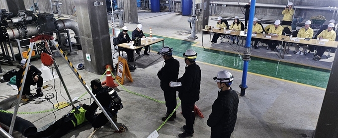 훈련은 밀폐공간 내 작업자 의식 저하 상황을 가정한 상황전파 및 초기보고, 위험요인 파악과 긴급구조 요청, 구조대 도착 전 응급조치 및 현장 통제, 환기 장치 및 가스농도 측정 장비 활용, 사고 원인 분석 및 사후조치 절차 점검 순으로 진행됐다.