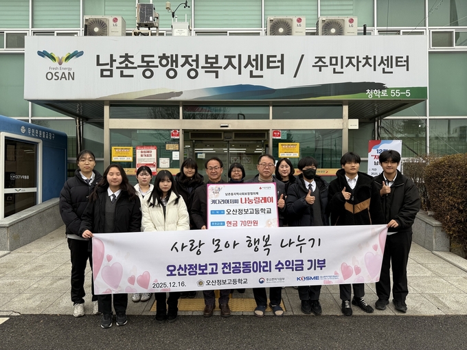오산시 남촌동행정복지센터는 지난 16일 오산정보고등학교 전공동아리 학생들과 주훈지 교장, 담당교사 등이 참석한 가운데 관내 저소득층 지원을 위한 바자회 판매 수익금 70만 원을 기탁받았다고 17일 밝혔다.