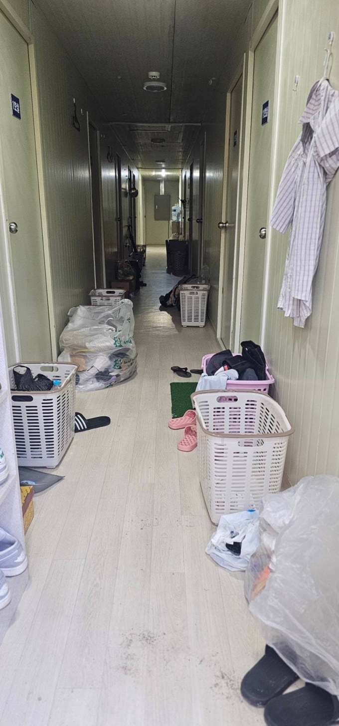 이 시설에는 미얀마 국적 근로자를 포함한 외국인 노동자 100여 명이 숙식하며 생활하고 있는 것으로 알려졌다. 현장에는 조립식 패널 형태의 건물들이 밀집해 들어섰고, 내부에는 취사 시설과 생활 집기까지 갖춰져 있어 단순한 현장 대기 공간이 아닌 사실상 장기 주거 공간으로 활용되고 있다는 것이 주민들의 주장이다.