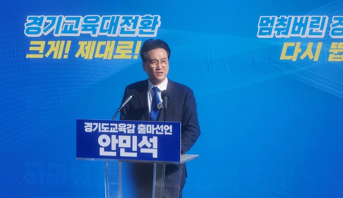 안 대표는 이날 도교육청 정문 앞에서 기자회견을 열고 “경기도민과 함께 경기교육을 살리고 국민주권정부와 함께 교육대전환을 이루겠다”며 출마의 변을 밝혔다.