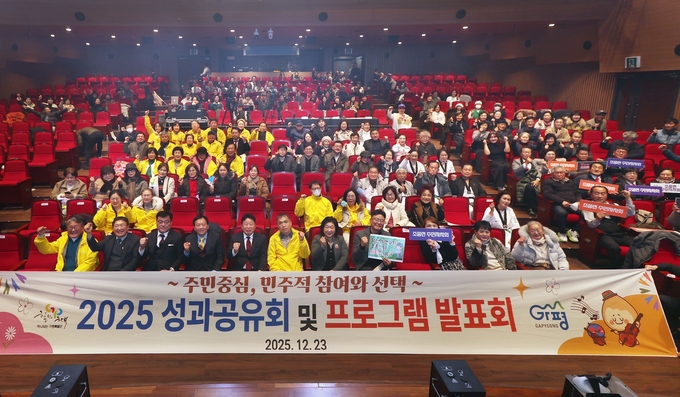 가평군은 23일 가평문화예술회관에서 주민자치회 위원과 주민들이 참석한 가운데 '2025년 주민자치 성과보고회'를 성황리에 개최했다고 24일 밝혔다.