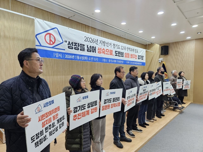 그러면서 “이번 지방선거는 단순한 인물 선택과 성장 위주 정책이 아니라 도민주권 회복과 도민의 삶을 바꾸는 성숙한 정책 선택의 선거가 요구된다”며 “시민사회가 요구하는 개별 의제를 넘어 시민참여·인권·성평등·돌봄·기후·교육·평화가 연결된 종합적 경기도정 비전 제시가 필요하다”고 덧붙였다.